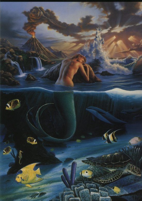 mermaid_dreams.jpg 150668 Wyland+Warren Mermaid rests with volcano in the background