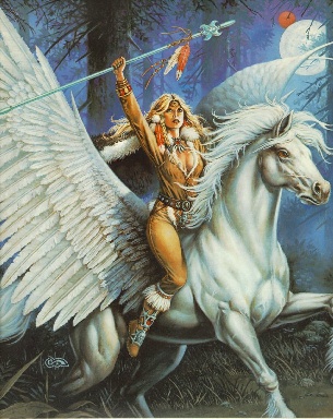 pegasus.jpg 74493 Pegasus with maiden warrior riding; D&D