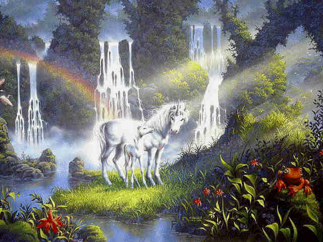 uni-mysticfalls.jpg 35275 Unicorn and colt by small waterfalls
